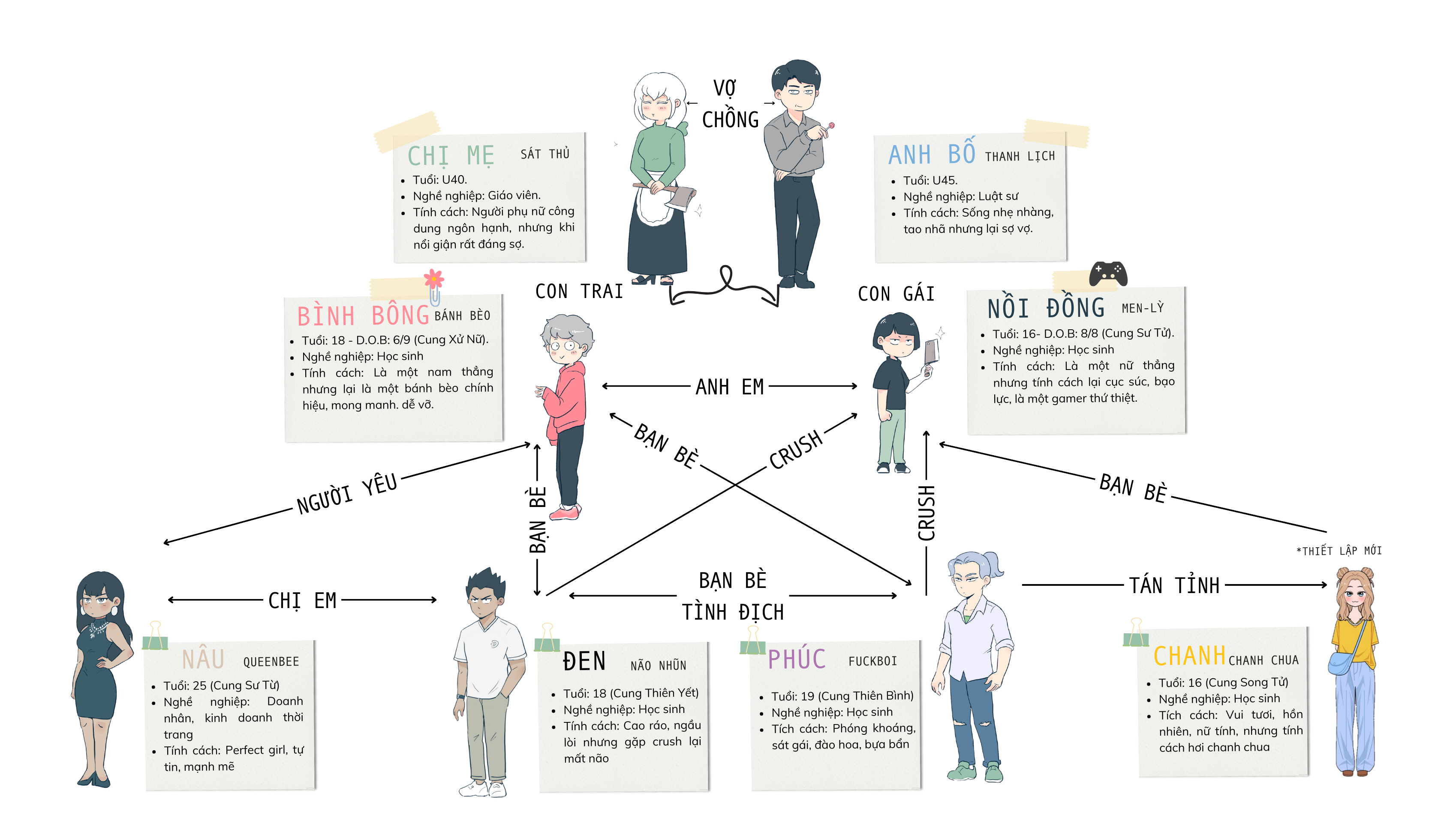 • Keyword: Cảm lạnh, chí chóe, anh em, bạn bè, gia đình, học đường, tình yêu, “cơm chó”,..