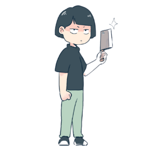 • Chị mẹ với chiếc rìu trong tay cười hiền với thoại “Đằng ấy sống hơi lâu rồi đấy!”